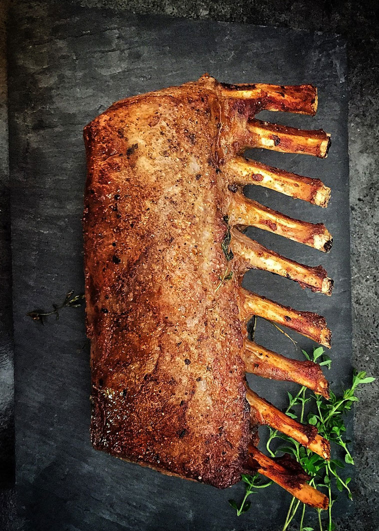Soft and pink meat, seasoned only with salt, pepper and finished with a generous paste made with thyme, basil, mint, parsley, butter and Parmesan cheese. The palate is faced, with each serving, with the crust of multiple flavors.