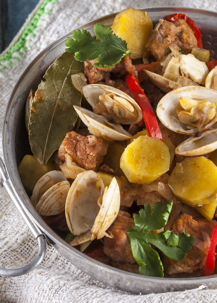 O porco à alentejana é um prato típico da cozinha portuguesa. É preparado com amêijoas, carne de porco, páprica, louro, vinho e alho. A carne é frita e servida misturada com as amêijoas cozidas. Este prato é acompanhado por batatas fritas em cubos e limão.